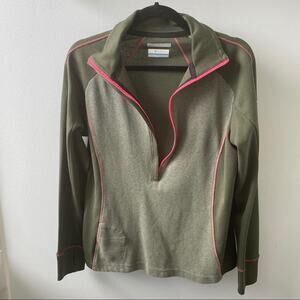Columbia Women's Olive Green Omni-wick Half Zip Pullover Pink Piping Size L