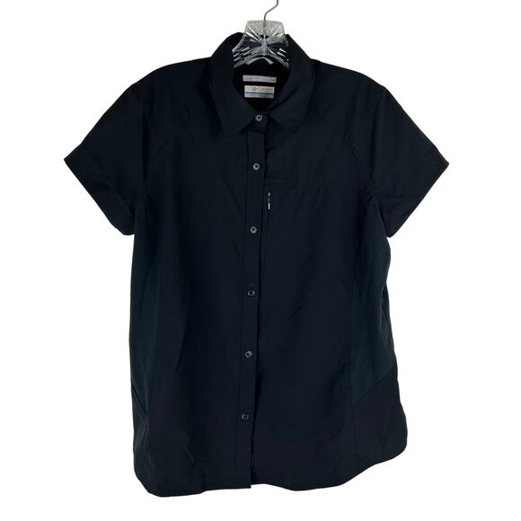 Columbia Womens Omni Shade Button Front Shirt Size XL Black Short Sleeve Vented
