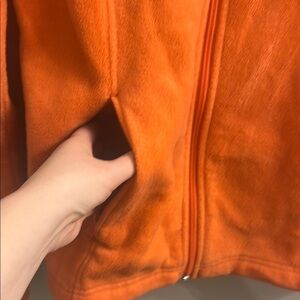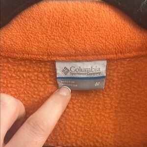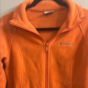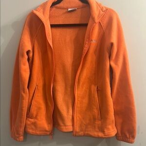 Vibrant orange fleece jacket by Columbia. Features a full zip and side pockets.