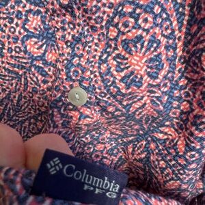 This Columbia Women’s Size XS PFG Collared Pink 1/2 Button Down Dress is a stylish and versatile piece for your summer wardrobe. The floral pattern, sleeveless design, and V-neck neckline give it a feminine and trendy look, perfect for casual or travel occasions. Made of lightweight and stretchy polyester material, this dress is comfortable to wear and easy to care for with its machine washable feature. The pink color, button accents, and logo details add a touch of charm, while the short dress length and side slit make it a fashionable choice for the warmer seasons.
