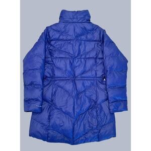 The Columbia Women's Peak To Park II Mid Insulated Jacket in Dark Sapphire Gunmetal is a stylish and functional outerwear option for cold weather. This mid-length jacket features synthetic down insulation to provide warmth without the bulk and water-resistant fabric to protect against light rain and snow. With a flattering, feminine fit and durable construction, this jacket is perfect for staying cozy and chic during outdoor adventures or everyday wear.