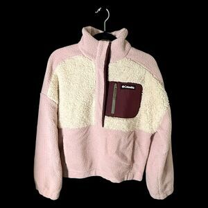 Columbia Women’s Pink & Cream Sherpa Fleece Snap Button Pullover Front Pocket