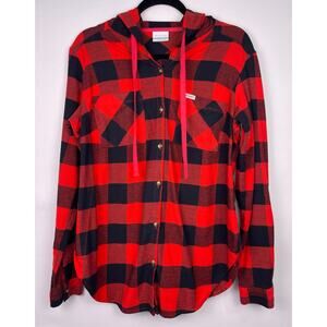 Columbia Women’s Plaid Flannel Hooded Button Down Shirt Size M