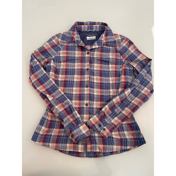 Columbia Women’s Plaid Hiking Shirt Long Sleeve Red/Blue Size XS Omnishield
