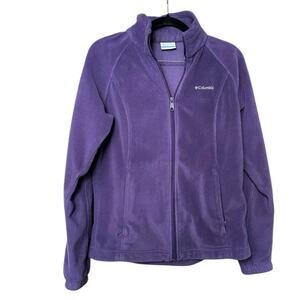 Cozy and functional, this Columbia Sportswear fleece jacket is perfect for chilly days. Made of soft fleece in a rich purple shade, it features a pull string at the waist for adjustable fit and warmth.