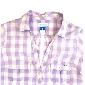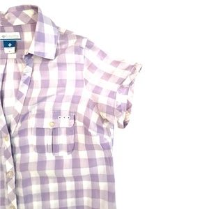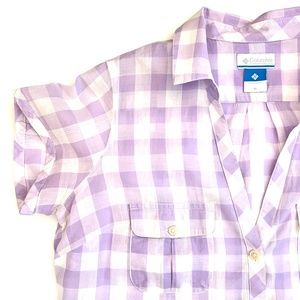 Columbia Women's Purple and White Plaid Short Sleeve Button Down Shirt