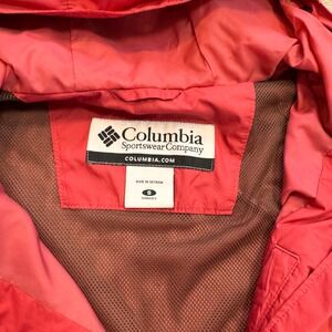 Columbia Womens Rain Jacket Hooded Size Pink Small S Colorblock Lightweight Coat