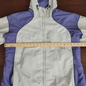 Columbia Women's Size L Hooded Midweight Full-Zip Rain Jacket Purple & Off White
