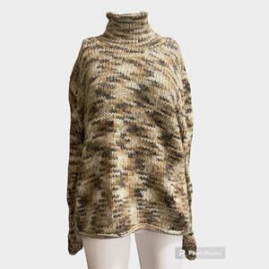 Columbia Women's Size Large Vintage Sweater Tan Chunky Knit Wool Mock Turtleneck