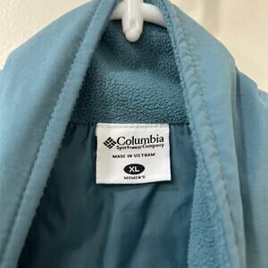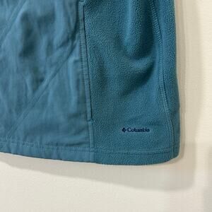 Columbia Womens Size XL Blue Fleece Polyester Full Zip Vest Outdoors Hiking. 100% polyester. It measures 24 inches from armpit to armpit and the length from shoulder to hem is 25.5 inches. In excellent condition.