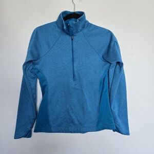 Elevate your outdoor wardrobe with the Columbia Women's Blue Quarter Zip Sweatshirt. Designed with a cozy polyester fleece fabric, this pullover is perfect for activities such as walking, hiking, and running. The mock neck and long sleeves provide additional warmth, making it an ideal choice for cooler days in fall, spring, or winter.