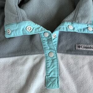Columbia Women's Small Pullover Fleece Gray Green 1/4 Snap Up Sweatshirt