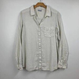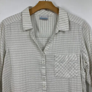 Columbia Women's Striped V-Neck Button Up Long Sleeve Outdoor Hiking Shirt SZ L
