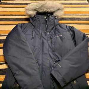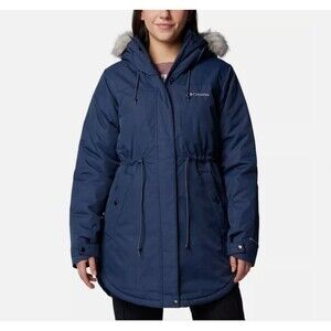 Columbia Womens Suttle Mountain Faux-Fur Trimmed Mid Jacket Coat Navy Blue Small