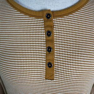 Columbia Women's Thermal Henley, Butterscotch Yellow & White, Waffle Knit, Sz L
