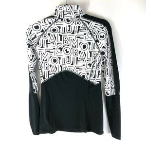 Columbia Womens Top Asymmetric Zip Spell Out Mock Neck Black White Size XS