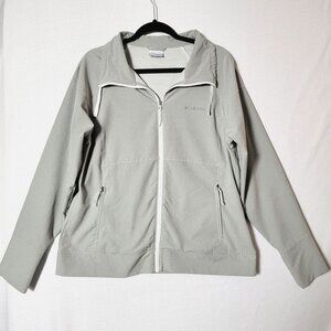 Columbia Womens Track Jacket Sz XL Long Sleeve Full Zip Pockets Light Grey