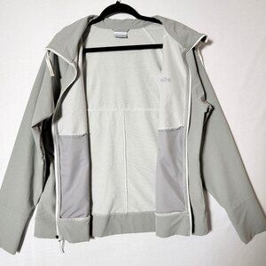 Columbia Sportswear Womens Track Jacket, Long Sleeve, Full Zip, Two Front Zip Pockets , Mesh Lining X Large Light Grey & White Polyester Elastane