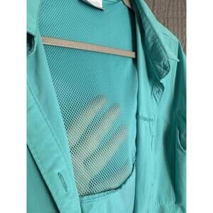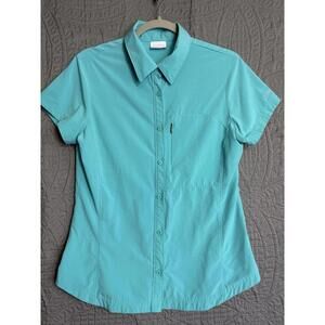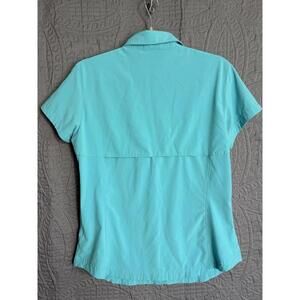Columbia Women's Turquoise Button Down Vented Back Zip Pocket Fitted Shirt