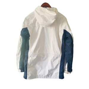 Pre owned but in good condition. There are a few stray marks on the jacket and one of the sleeves has some fading. (See photos) . These flaws do not affect the overall appearance of the jacket.