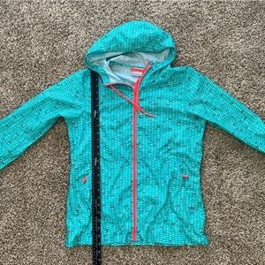 Columbia Women’s Windbreaker Rain Jacket Teal and Hot Pink Aztec Print Sz Small