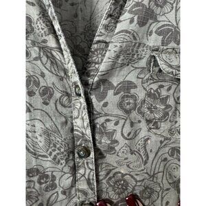 Columbia Womens XL Brown Floral Linen Button Down Top Outdoors Preppy Country