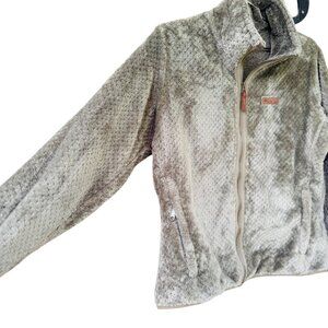 Stay warm and comfortable with this Columbia fuzzy full-zip jacket. Designed for women, it features a soft texture and an olive green color, adding both style and function to your outerwear collection. Ideal for chilly days, this jacket ensures warmth with its cozy polyester fabric.