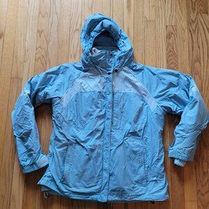 Columbia Womens XL Interchange Light Blue Water Resistant Quilted Jacket With Ho
