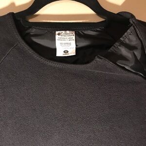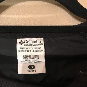 Columbia black fleece. Very light weight fleece. Side zipper by the top left shoulder. In great preloved condition. Approximate measurements flat lay armpit to armpit 18”, top shoulder to bottom hem 22”. Size small.