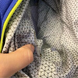 Drawstring adjustment at the bottom, elastic at the wrists Snap across the chest to close the jacket when the zipper is open