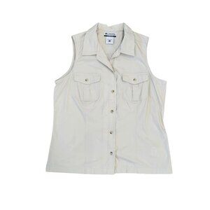 Columbia Womens tactical Beige Sleeveless Button-Front Vest Large 100% Cotton