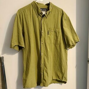 Columbia XCO Button Up Shirt Men's XL Green Short Sleeve Shirt Chest Pocket