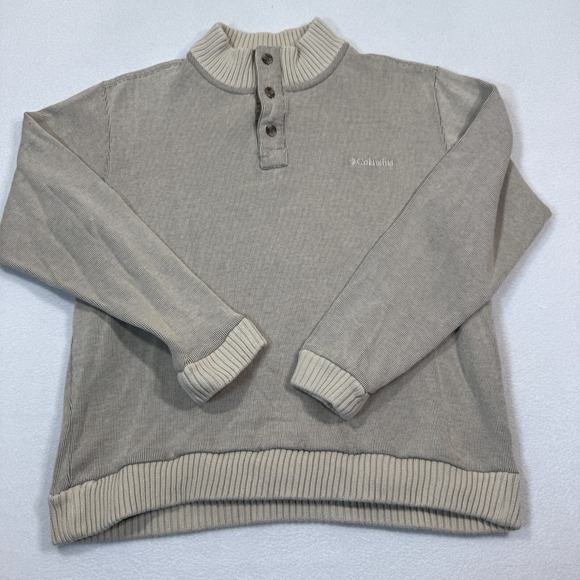 Columbia XCO Sweater Mens L Beige Long Sleeve Henley Pullover Outdoor Adult