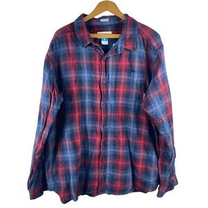 Columbia XL Button Down Shirt Mens Red Blue Plaid Long Sleeve Regular Fit Cotton