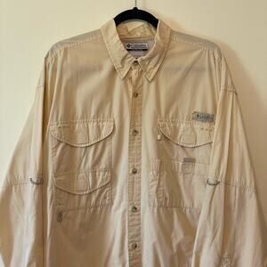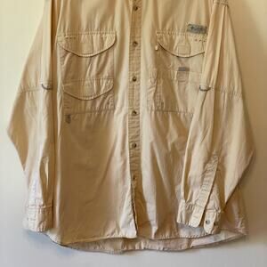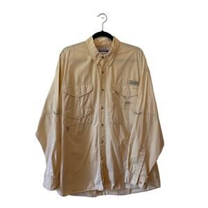 Columbia XL casual button down t-shirt outdoor yellow solid utility gorpcore