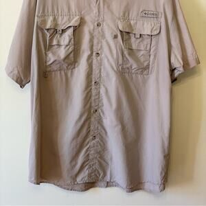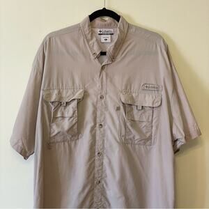 Details: Columbia short sleeve top utility outdoor hiking two chest pockets collared neckline water resistant casual button down fishing mesh lining