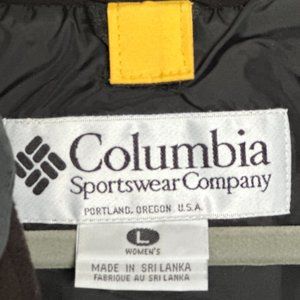 Columbia Y2K Womens L Ski Snowboard Jacket Yellow Black Liner Multi Pockets Zip