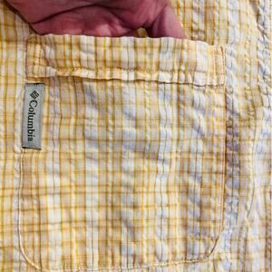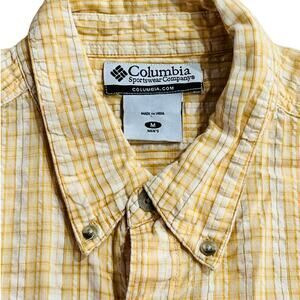 Columbia Yellow & White Plaid Short Sleeve Button-Down Cotton Shirt Mens Medium