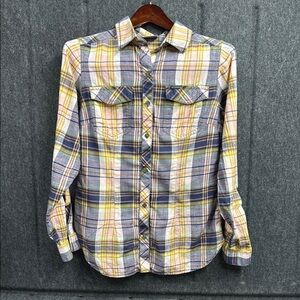 This Columbia shirt combines a vibrant yellow and blue plaid pattern with a classic button-down design, perfect for a relaxed yet stylish look. Crafted from a comfortable cotton blend, it offers a regular fit and long sleeves, making it ideal for casual outings.