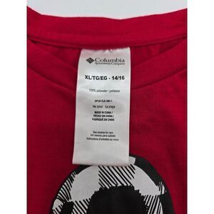 Columbia Youth Red Long Sleeve Tee With Graphic Dog Soccer Print Size 14/16 Poly