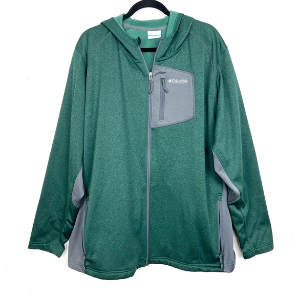 Columbia Zip Up Jacket Hooded Sweatshirt Fleece Lined Dark Green Men's XXL