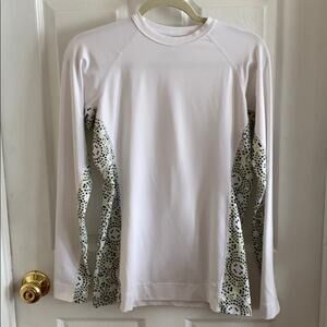 Columbia active wear top. Like new. Lovely white with printed half sleeves and sides. Omni shade sun protection. Armpit to armpit measures 19 inches. 26 inches long.