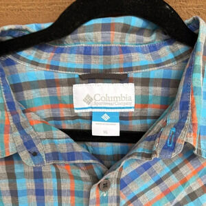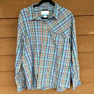 Columbia blue and gray plaid long sleeve button up men’s shirt size XL