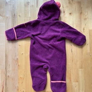 This is a great piece of outerwear for your kiddo! Wear with light or thick layers underneath depending on weather. Will definitely keep your child warm on walks in a carrier or stroller. Enjoy the “mittens” and “feet” features that serve as gloves, socks/shoes. And the bear ears are just too cute!