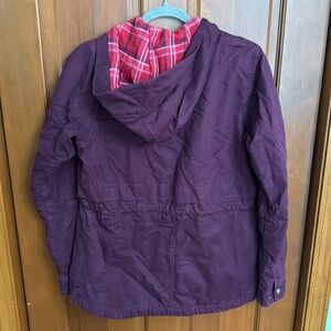 Flannel lined drawstring waist jacket with zip and snap center front and snap pockets