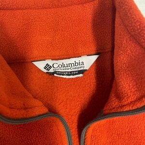 Columbia fleece jacket. Rush orange and grey. Youth size XL. Condition pre loved. This jacket does have the size tag cut out but measures as youth xl