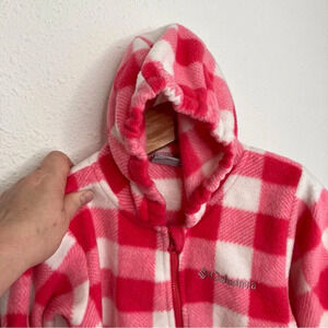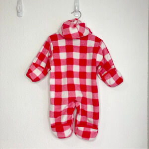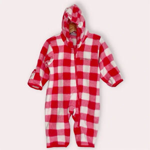 Columbia fleece snowsuit bunting hooded pink buffalo check plaid size 6 months