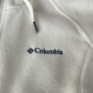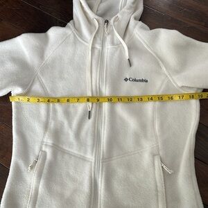Columbia full zip hooded fleece jacket Cream Womens size M Warm Comfy Cozy Neutral