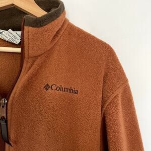 Get ready for cozy comfort with this Columbia full zip fleece sweater! In a vibrant orange hue and size large, this sweater is perfect for adding a pop of color to your casual wardrobe. Made with warm and soft fleece material, it's ideal for chilly days and evenings. The full zip design allows for easy layering, while the pockets offer convenient storage for your essentials. Whether you're running errands or relaxing at home, this Columbia fleece sweater is sure to keep you feeling snug and stylish. Don't miss out – grab it now and experience the perfect blend of warmth and functionality!