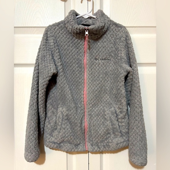 Columbia girls’ fire side sherpa full-zip coat grey/pink size small 7/8